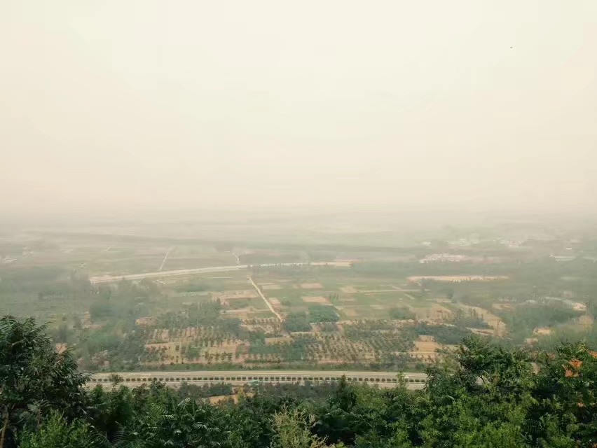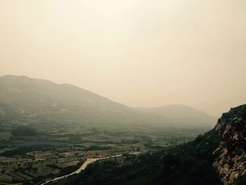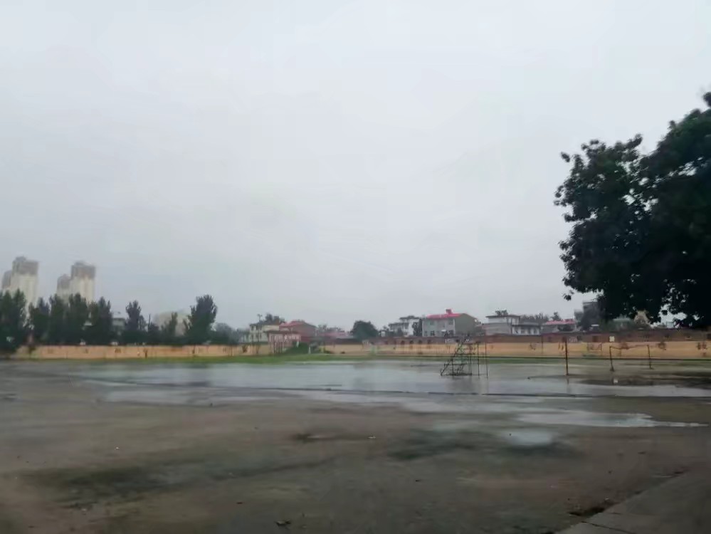 当初的操场和远方的山丘。