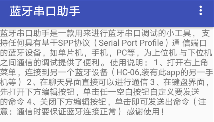 - 由于本人学渣,不会写手机APP,用的手机软件是“蓝牙串口助手”,应用商店搜索就能下载。