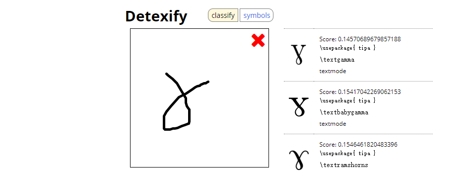 公式识别 神器推荐:点我是网址。 。不认识的字在里面画一下,后台告诉你叫啥,没准后台是是CNN,我瞎猜的,看下效果比如: