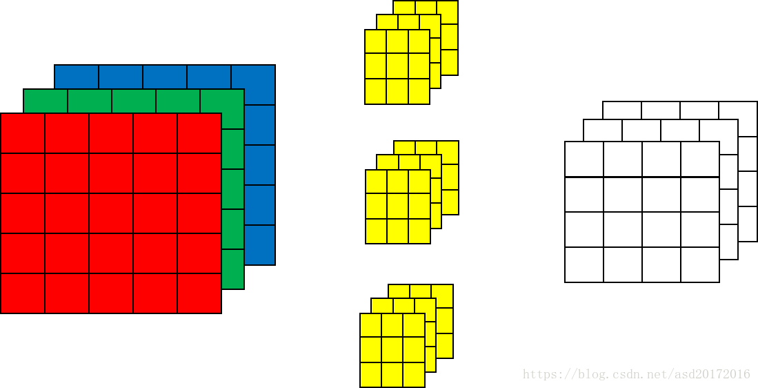 有关卷积神经网络 在下图中,伴随着三个卷积核对原始图像进行卷积,每个卷积核加一个偏执项biases,这一层网络便会得到三维的输出结果,即输出的通道数(channels)等于检测的特征数(filter numbers),可以认为一个滤波器检测一个特征。
