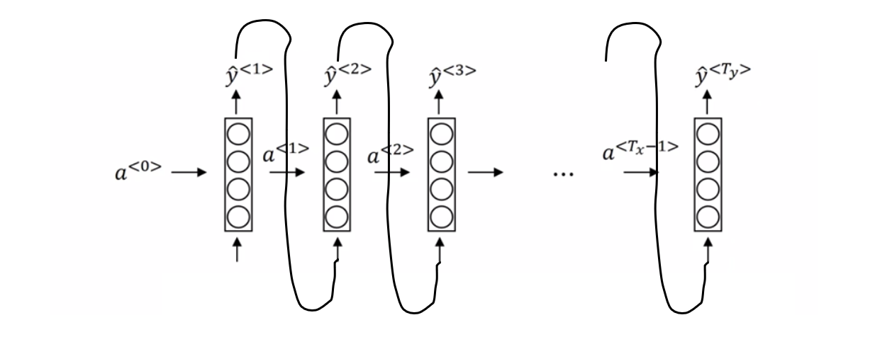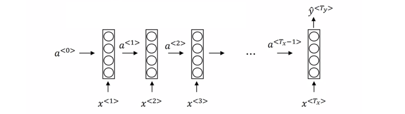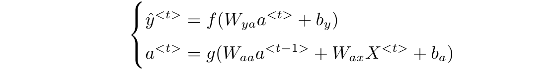 \hat{y}^{<1>}=f(W_{ya}a^{<1>}+b_y)