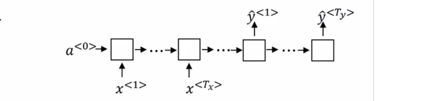 首先,$T_x$表示一个样本中单词的数量,$\hat{y}^{<1>}$表示对样本中第一个单词的预测,$a$就是个中间变量,图上画得一个方框加四个圈表示计算过程。$X^{<1>}$会经过one-hot编码处理,假设样本数据库共有10000个单词,$X^{<1>}$为第一个单词,假设在词典排序中的位置为7893,那么$X^{<1>}$就是一个长度为10000,只有第7893个位置是1的零向量,其余单词也是经过one-hot处理数值化。Keras中使用序列模型进行分类时,通常都会对类别进行one-hot编码:1>1>1>1>