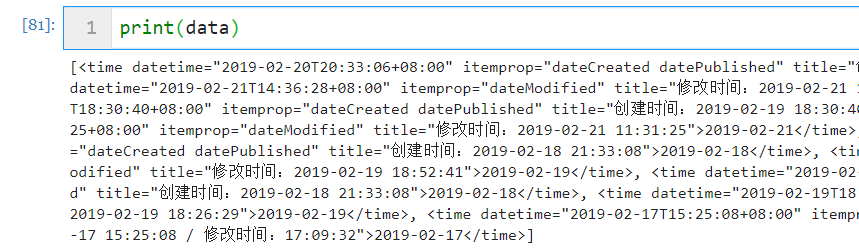 1 2 3 4 5 6 r = requests.get(home_url) soup = BeautifulSoup(r.text, "lxml" ) body = soup.body data = body.find_all('time' ) print (data)