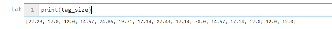 1 2 3 4 5 6 test = re.compile (r'\d+\.?\d+' ) for  i in  range (len (tag_size)):    tag_size[i] = (test.findall(str (tag_size[i][0 ]))) for  i in  range (len (tag_size)):    tag_size[i] = float (tag_size[i][0 ])
