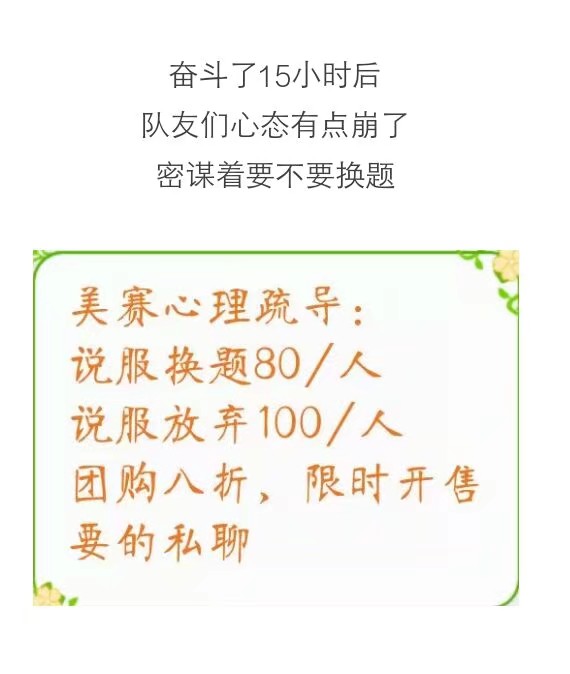 MathorCup后是个转折,我遇到了和我一起国赛美赛的两个队友,两场重要比赛一直没有换过。还有就是酷爱水群的我,不过我从来不水本校的群,没意思,相比之下我更愿意看看外面的世界。加了一个建模竞赛的群,没有任何广告,没有任何机构的一个纯技(深)术(夜)交(扯)流(蛋)群。我从来不关心学生的出身,双非也好四非也罢,有纯粹的兴趣爱好和乐趣便能够交流到一起。那些日子很少交流有关建模的东西,大多是在扯淡,比如日常学习,比如你的前任男友,比如你那里的学校,blabla闲聊起来无非也是这些。