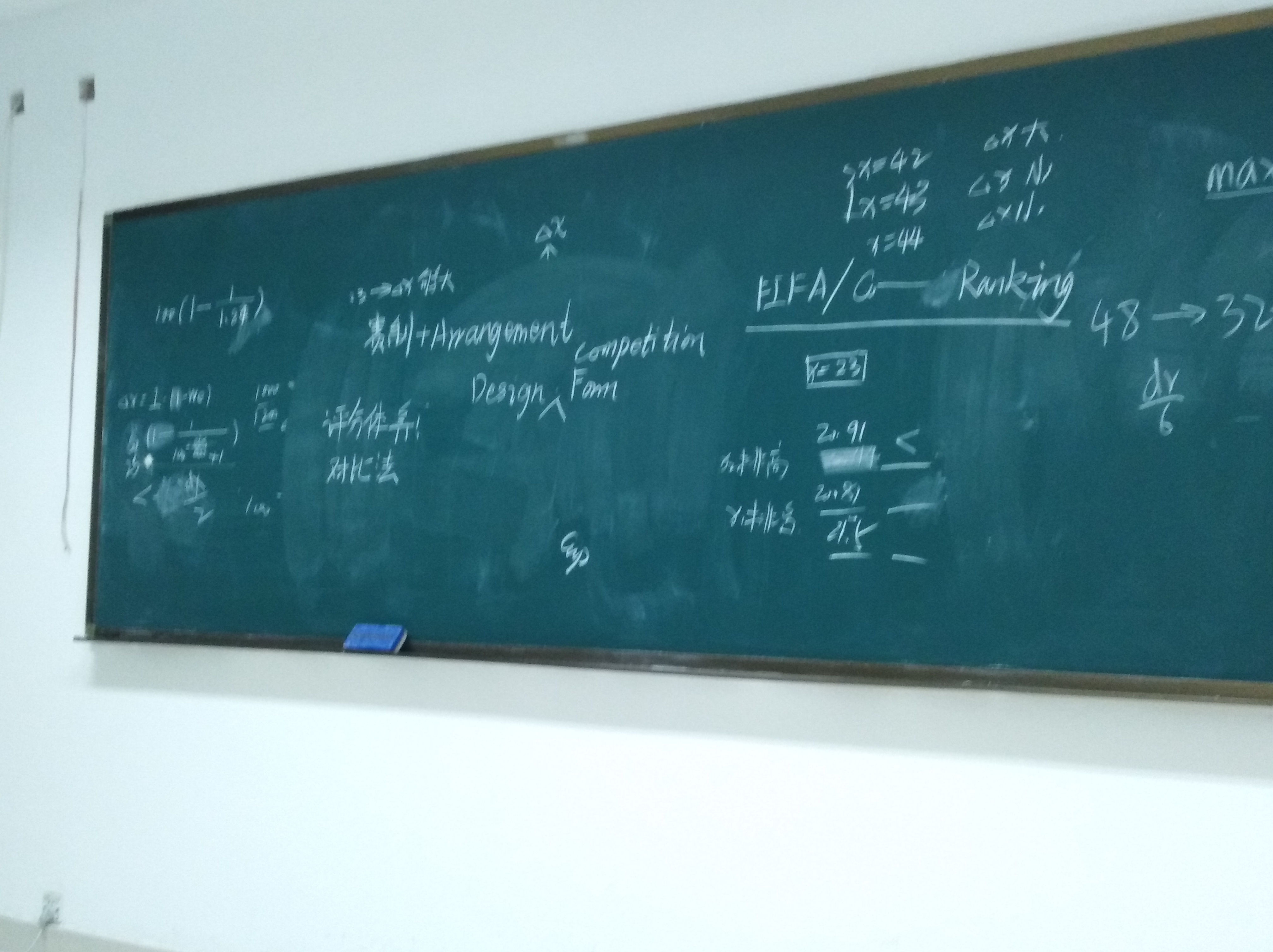 说正事,这次的小美赛做的B题。说实话没有做的出彩的地方,因为我实在想不到这个题能做的点在哪。大概去网上找了5个小时的资料,惊奇的事情发生了,第一问FIFA官方已经制定好了结果和步骤,你只需要描述一下就行;第二问官方也要求了时间和次数,在这个要求下只有一种答案;第三问官方给出了计算公式,连公式都不用学生写,抄上去算个数就行。所以我实在不知道这道题到底想干嘛,以至于一天半的时间这道题做完了,这一天半还包括上课的时间。这道题对我最大的挑战也就是写了5行代码解了个方程。其实算不上挑战,所有代码加起来抄不过五行,一分钟写完。也没有用什么工具箱求解,直接一个for循环暴力破解求出了答案。后来知道,官方要我讨论为什么出现垃圾比赛,简直蛋疼。