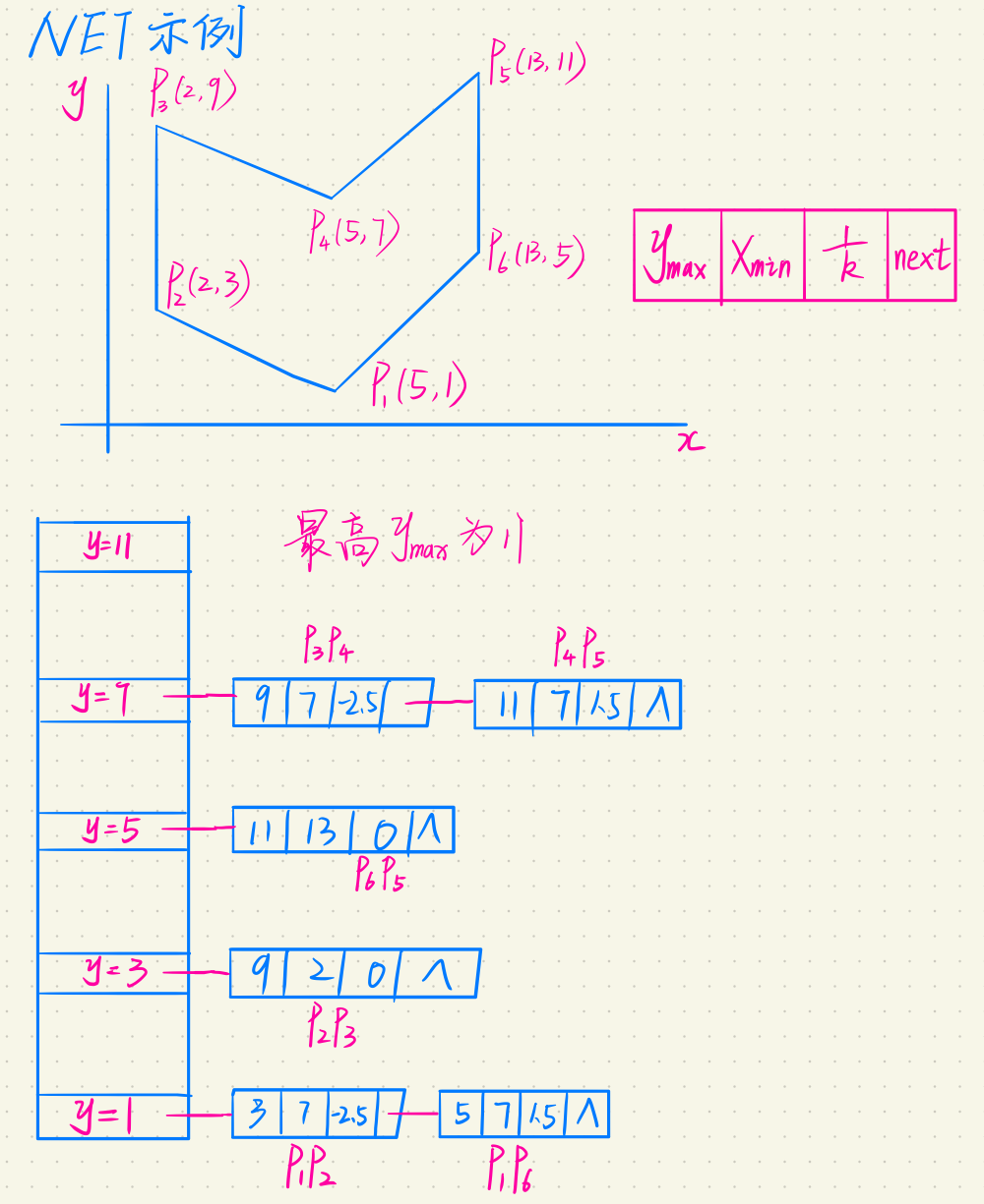 计算相应的$y$值,因为像素坐标是整数,$y$需要+0.5,向下取整。