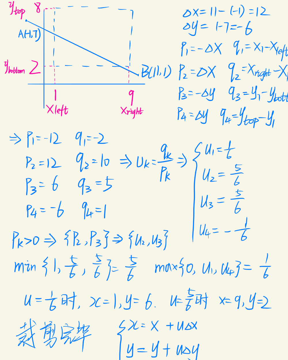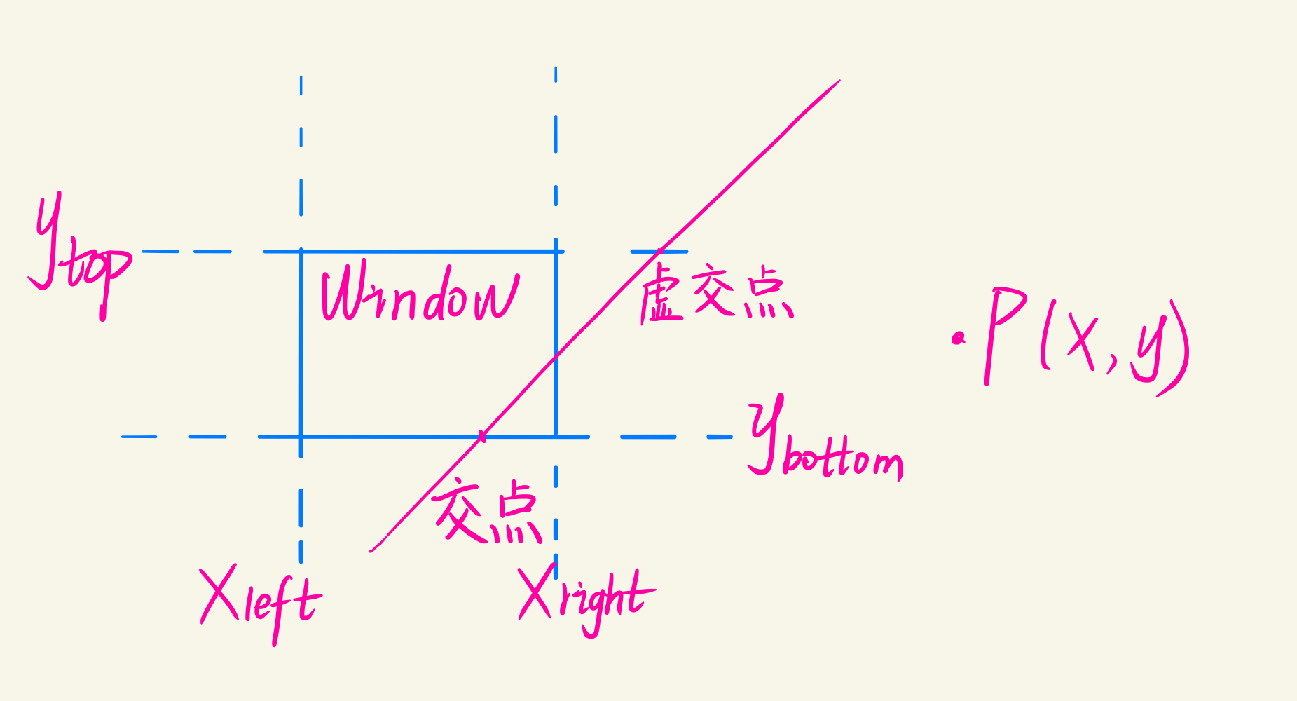 判断多边形与窗口相交:用直线方程(规定定义域内)求交点判断即可。