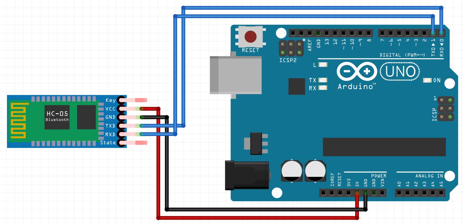 - HC-05的发射端TXD连接Arduino的接收端RXD