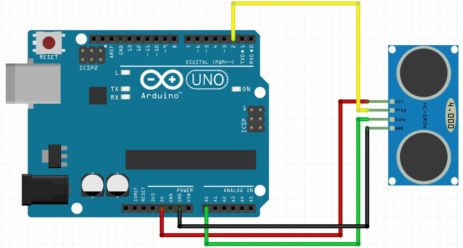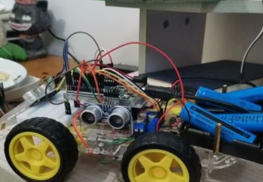 这个时间是声波在空气中传播的时间,因为是往返的,所以计算过程需要除以2,变成单程的时间,再将这个单程时间乘以声速即340米/秒,得到的就是从当前位置到对面障碍物的距离。因此,得到的电路连接方式如下: