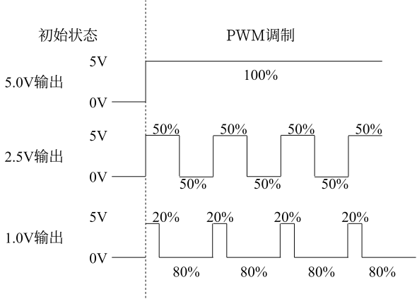 - 在一个时间段内,一半的时间供电,一半的时间不供电,那么电机只会在一半的时间内转动,此时的速度会低于满电输出;