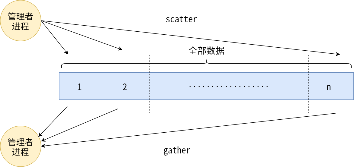 dest表示发送的目标进程的 rank,tag表示消息的 ID,source 表示源头进程的 rank,tag表示信息的 ID。两个 ID 对不上,消息则无法接收。通过 rank 号来设置主进程,在这里,指定的 rank=0 的就是『管理者进程』。然后通过一个 for 循环给其他进程发送数据。当通信的内容很多时,可以使用 tag 来区分不同的消息。