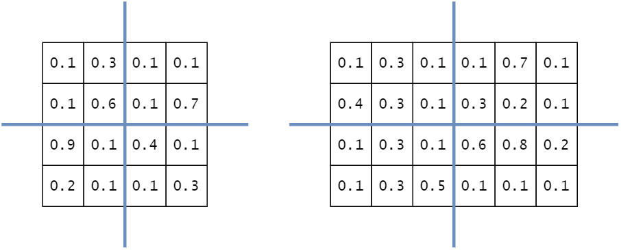 ROI-pooling 层的目的在于,不限制输入图像的大小。因为 ROI 后面的全连接层肯定是固定到某一个特殊维度的,而每个候选框对应特征矩阵的大小也不一致,所以,需要使用 ROI-pooling 将不同大小的特征矩阵映射到同一大小。具体方法如下,算了如图吧,如对任意大小的特征矩阵映射为 $2\times2$的特征矩阵,取其中的最大值或平均值。$7\times7$ 也是同一个道理。