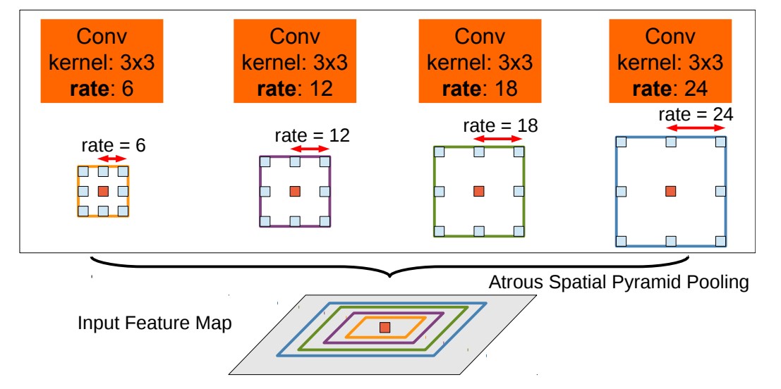 max-pooling的步距设置为 1,并配合使用膨胀卷积。 由于分割目标存在多尺度问题,作者提出了