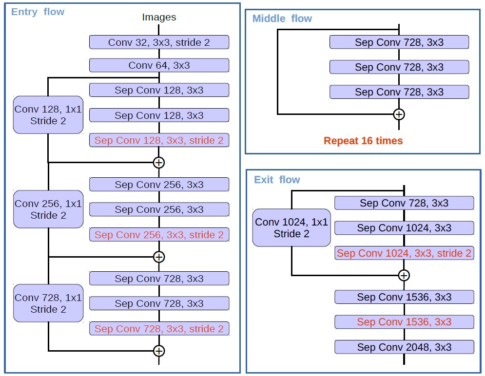 - backbone 替换为 Xception,在 Entry flow 中,首先是两个