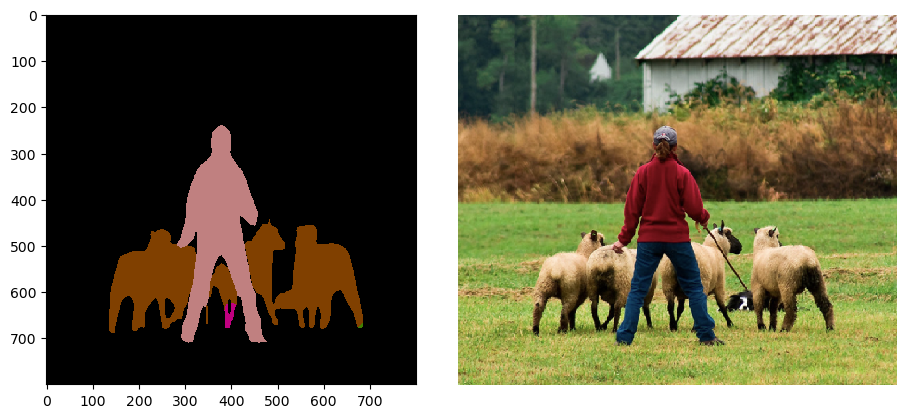 若要可视化展示结果,需要对网络输出的结果进行解码。如标注图片上的类别等。假设输入图像的尺寸是 [800, 800] 的,当前类别数量是 21,会得到 [bacthsize, num_classes, height, width] 的输出。假设当前 batchsize 是 1,那么就需要在 num_classes 张 [height, width] 大小的图片中选择出每个像素点的类别。