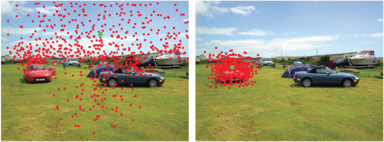 其实这种形式挺重要的,尤其是算法部署到真实世界,是无法提前预知目标和图像的大小的。而如果模型有这种自适应感知目标区域大小和调节感受野的能力则再好不过。如下图所示,DCN 相比 CNN 而言,能更好的感知目标区域。
