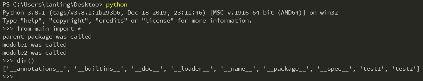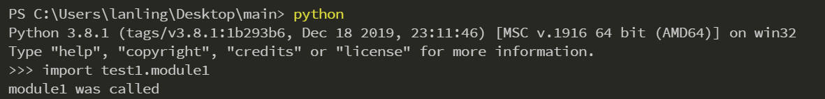 如果想导入单个子模块,可以 import main.test1,此时会打印 module1 was called;如果再次调用 import main.test1,也就是在模块已经导入的情况下再次导入,则不会打印任何信息。