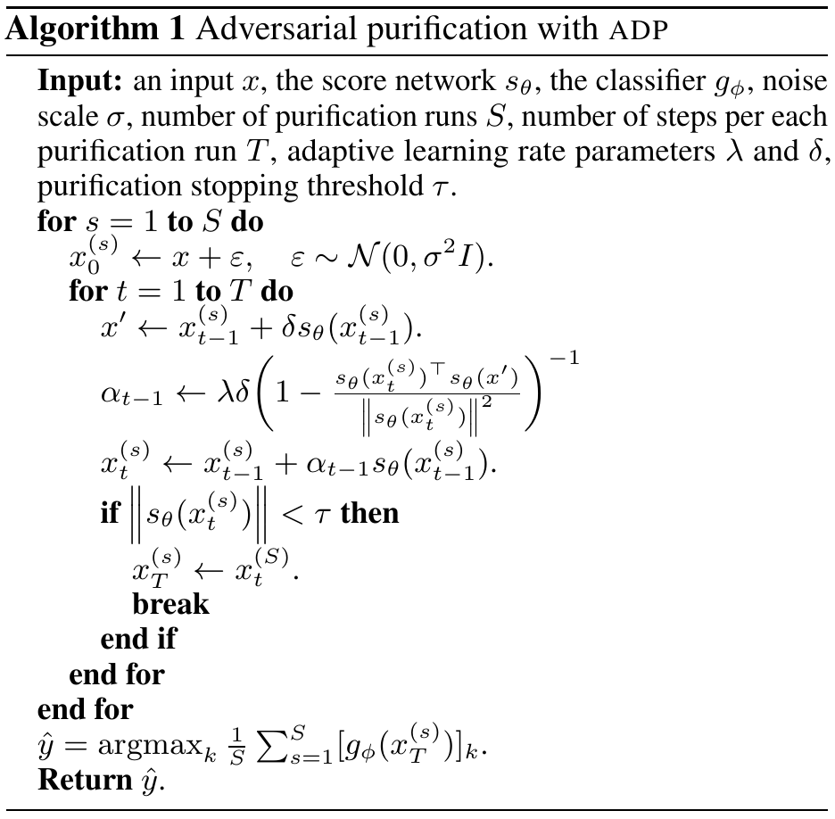 - Adversarial Purification with Score-based Generative Models, ICML 2021