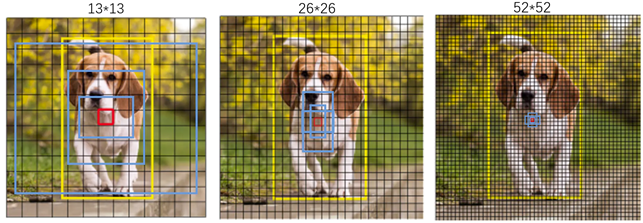 在这一部分,将对 head 的三个输出进行一些转换并生成对应的 grid 信息,将预测输出对应到图像中的实际位置。grid 可以理解为特征点的位置吧,是固定的,如下图所示黑色的那一个个格子(其他颜色不用看,我实在找不到类似的图了):